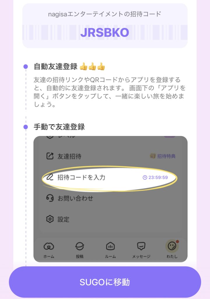 ②招待コード入力→JRSBKO